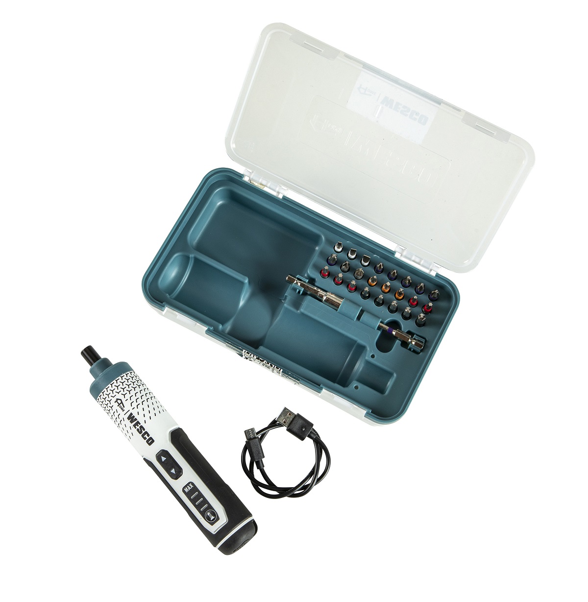 Parafusadeira Home 3,6v - WESCO, é um lançamento da marca direcionado principalmente a hobbistas e trabalhos leves como conserto de: computadores, notebooks, celulares e elétrica ou aos trabalhos que necessitam de ferramentas retas e de baixo torque em geral Especificações: Luz led na frente Interruptor integrado com função rotação a frente e reversa Áreas emborrachadas Indicador de nível de torque (força) Encaixe hexagonal de 1/4 Compacta Acompanha: - 24 bits - cabo usb para carregar - 02 soquetes prolongadores para os bits - caixa plástica com trava na tampa para transporte Inclui: Tensão nominal: 3,6 v Velocidade: 360 rpm Configurações de torque: 3 níveis Torque máximo: 3 n.M Capacidade da bateria: 1,5 ah li-íon Tempo de carregamento: 3 h a 5 h